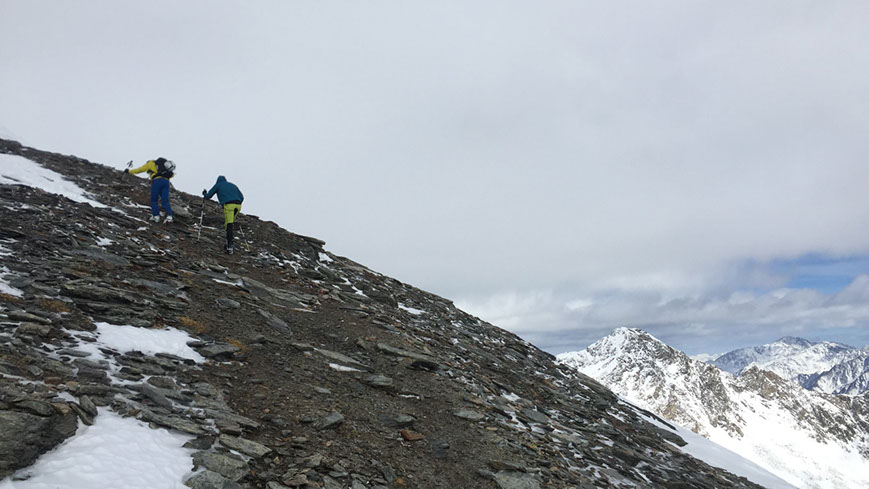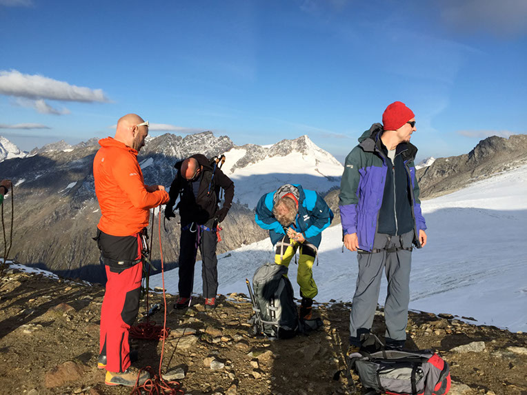 vom Wanderniveau bis zum IV.Grad (UIAA). Exemplarische Touren: Hochfeiler · Similaun · Weißkugel · Piz Buin · Ortler