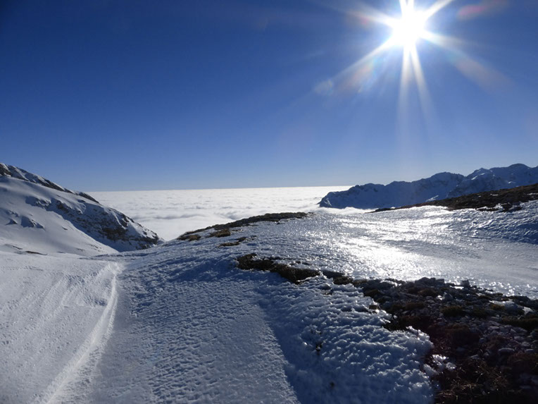 an, die Ruhe und Kraft in den Bergen suchen, sowohl im Winter