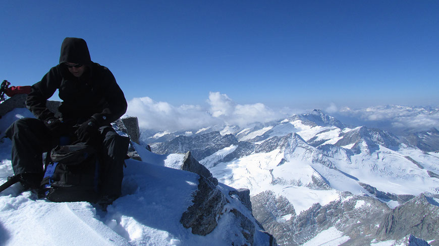 vom Wanderniveau bis zum IV.Grad (UIAA). Exemplarische Touren: Hochfeiler · Similaun · Weißkugel · Piz Buin · Ortler